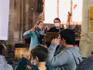 Magnifique moment animé par Jérémy à la guitare et Bénédicte qui ont fait chanter, et quelquefois danser, petits et grands; au répertoire on a chanté: “Que ma bouche chante ta louange”, le psaume 117, un chant à Marie et d’autres … Bruno a lu un passage de l’Evangile Jean (20,1-10), puis a suivi un temps de silence. Nous avons écouté Elfi nous conter l’histoire d’une jeune fille togolaise Henriette Akofa Mc Kinney, ponctuée de questions suggérées par les enfants. Puis nous avons repris des chants de louange. Ce fut un temps de prière intense et joyeux .