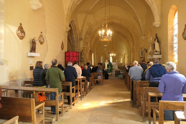 Les travaux du 19ème siècle qui avaient comporté la pose d’une couverture en ardoises trop lourdes avaient eu pour conséquence de déstabiliser le chœur : “des désordres importants sont alors apparus, notamment des fissurations verticales dans les envoutements et les murs du chevet. L’arc de la deuxième travée a subi une déformation telle que ce dernier ne fonctionnait plus en poussée et ne pouvait plus se tenir seul” (extrait d’un document rédigé par le maire d’Authiou). D’où cet échafaudage qui a interdit l’accès au chœur pendant une vingtaine d’année et n’a pu être démonté qu’à la fin des récents travaux de restauration mi-2020
