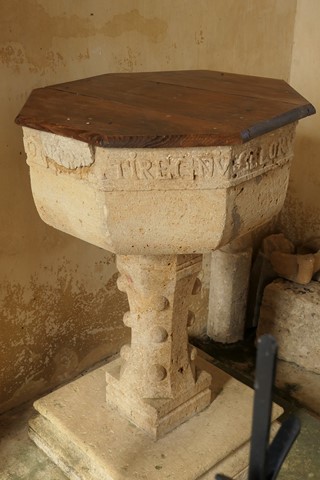 Les fonts baptismaux sont en pierre et datés du XVIIe siècle (1608) sa cuve porte une inscription en relief « A moins de naître à nouveau, vous n’entrerez pas dans le royaume des cieux »