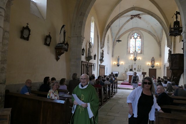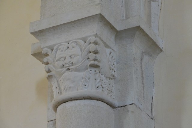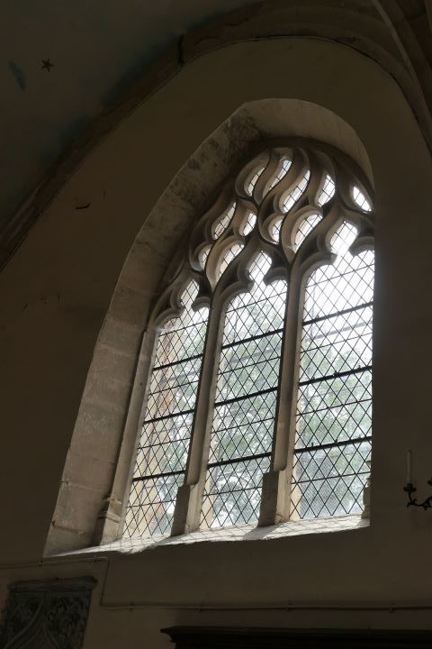 L’église comporte de beaux vitraux gothiques à remplages flamboyants et de jolis chapiteaux.