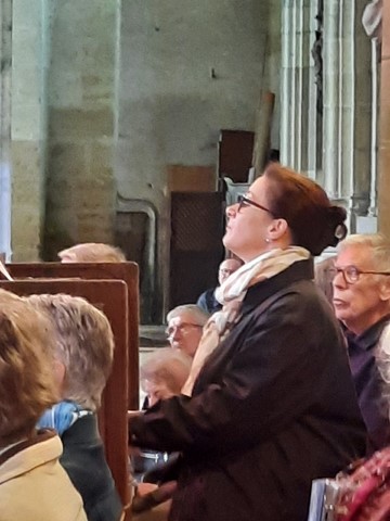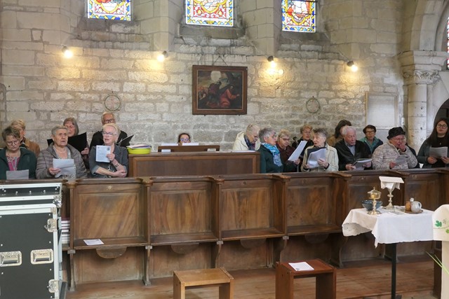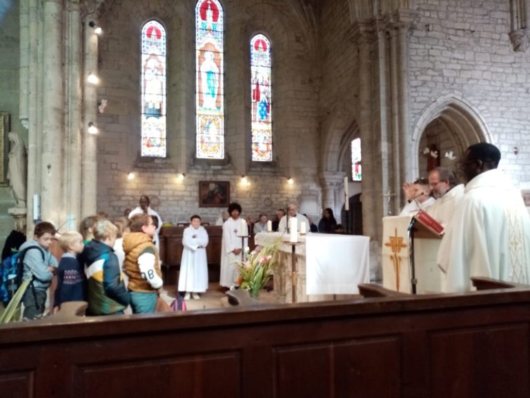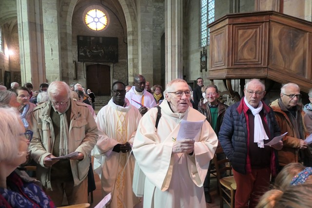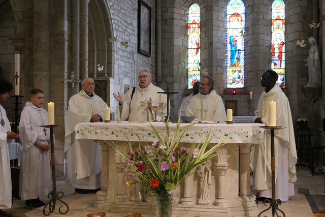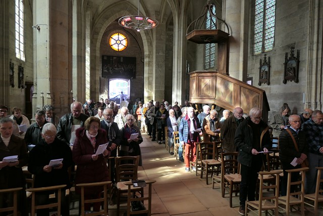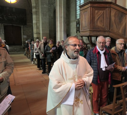Après la bénédiction du père François-Xavier, c’est le diacre Patrick qui envoie les paroissiens présents.Aidée par la chorale paroissiale et l’orgue, la foule chante “Le cantique de la Création”.