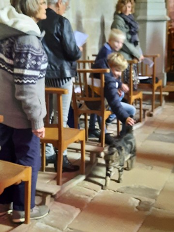 Mais un animal non invité est venu apporter une note humoristique au beau milieu de cette messe : le chat du vétérinaire venu faire son petit tour jusque dans le chœur, avant de repartir comme il était venu : en silence ! Quel symbole dans cette messe dédiée à Saint-François d’Assise qui aimait tous les animaux de la Création.
