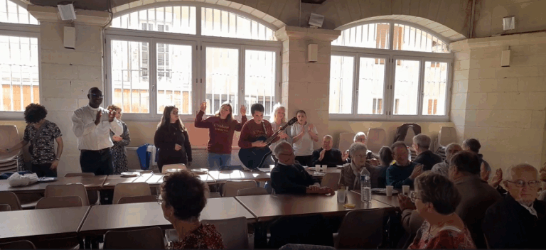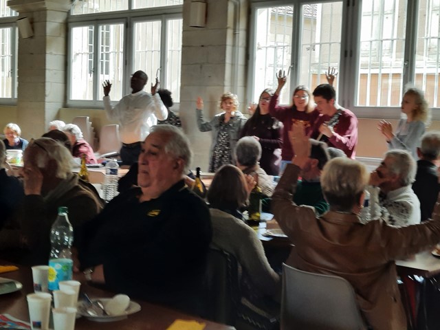 Repas très convivial, entrecoupé vers la fin de chants de louange pour rendre grâce au Seigneur de cette belle fête de Saint François d’Assise.