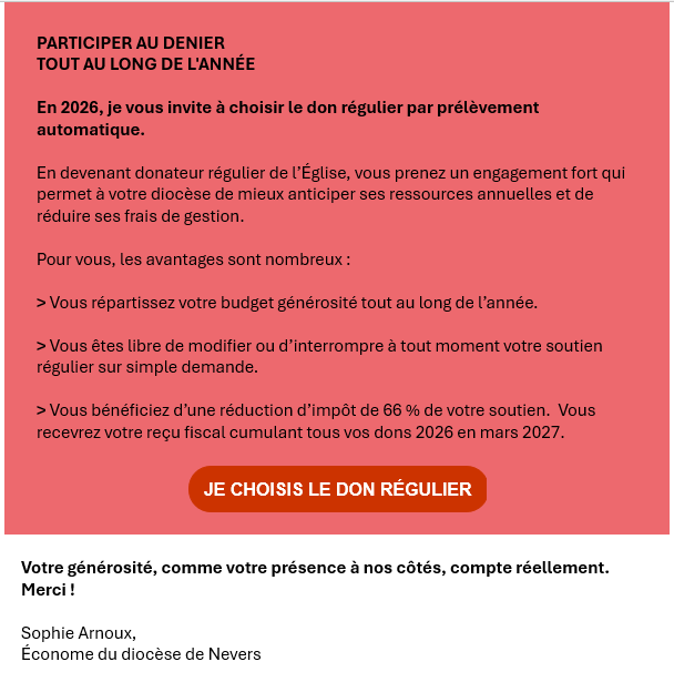 la nouvelle campagne 2026 du Denier de l’Eglise.