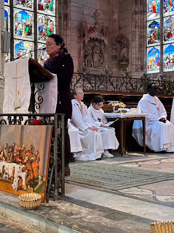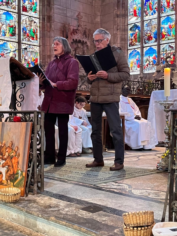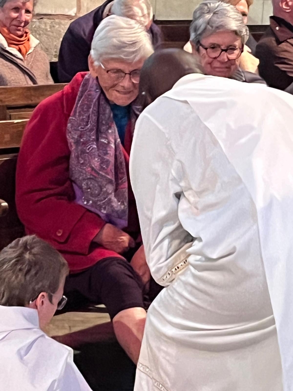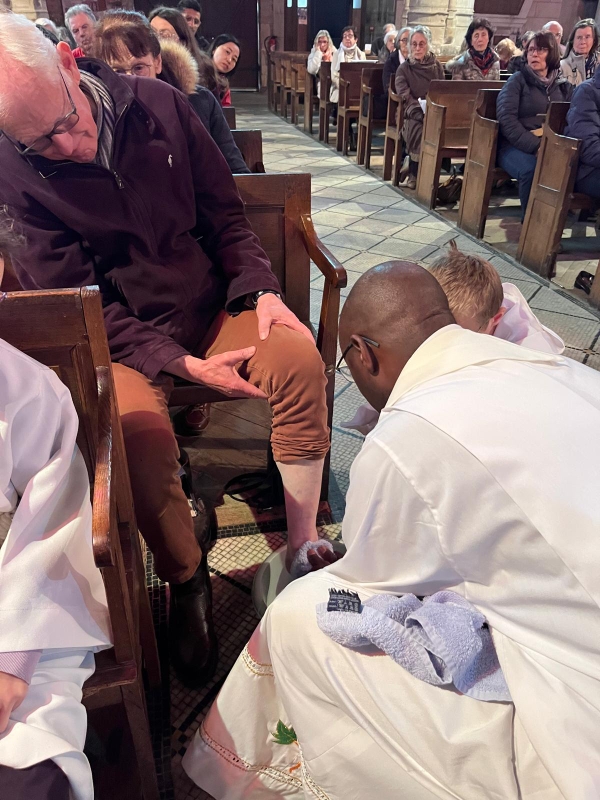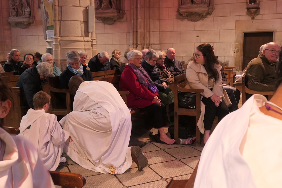 Comme Jésus a lavé les pieds de ses Apôtres lors du Dernier Repas en leur disant : « C’est un exemple que je vous ai donné afin que vous fassiez, vous aussi, comme j’ai fait pour vous. » (Jn 13,15), le célébrant refait ce geste symbolique d’humilité et de charité envers 12 paroissiens représentants différents services de la paroisse.