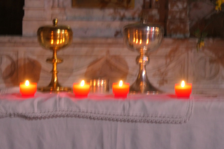 A l’issue de la communion des fidèles, le Saint Sacrement reste exposé sur l’autel dans deux ciboires dans l’attente du