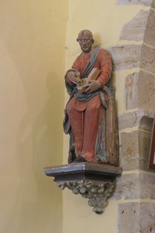 En entrant dans l’église, on remarque immédiatement la belle statue polychrome de Saint-Pierre aux liens. Selon les Actes des Apôtres (Ac. 12, 5-10), emprisonné à Jérusalem par Hérode, Pierre s’est débarrassé de ses liens grâce à l’aide d’un ange… A Rome, la Basilique de Saint-Pierre-aux-Liens abrite, selon la tradition, les reliques des chaines de Saint Pierre.