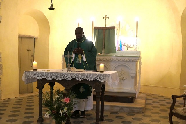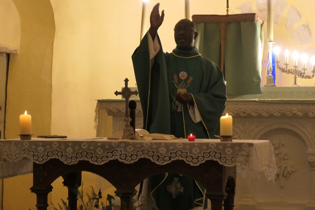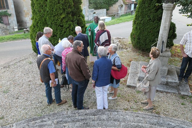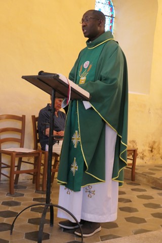 Le père Jean-Marie remercie les paroissiens Georges et Annick qui, habitant sur place, ont préparé l’église et animé les chants et aussi la municipalité pour la préparation du verre de l’amitié.