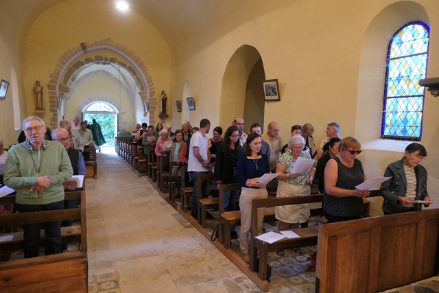 Avant de conclure cette célébration, le père Jean-Marie fait chanter le “Cantique des trois enfants” (Dn.3), un hymne à la nature qui sera repris jusqu’à la fête de Saint-François d’Assise, le dimanche 5 octobre, à l’église de Tannay