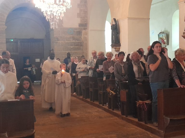 Voir la Vidéo de sortie de notre curé portant les corbeilles de pain béni pendant que les fidèles entonnent le chant d’envoi : “Tu nous appelles à t’aimer“